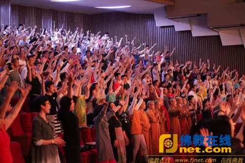 整个音乐会气势磅礴,高潮迭起,以纪念惟老为主线,通过现场共唱禅乐,齐跳乐舞的方式表达怀念,大众同诵《金刚经》以祈愿,发挥音乐的力量,超越宗教的模式,充分调动听觉、视觉、触觉、感觉的体验,传统与现代完美结合,音乐与佛法相得益彰。一首首天籁如有声的诗,韵律之禅,让人心静安详,《一起走进惟老》的视频短片和声情并茂的惟老的配乐诗朗诵更是催人泪下,宛如惟老又现在眼前,其慈心照世,悲愿利人的人生佛教理念,为法忘躯之精神,再一次烙进弟子心间。