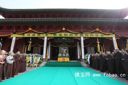 法会上午九时在大雄宝殿前举行,会场布置庄严肃穆。黄梅县委副书记郭茂兰、黄梅县政协主席郭小野、黄冈市民宗局局长彭仕雄、黄梅县统战部部长朱凤娥、黄梅县宗教局局长黄林兵、五祖寺方丈见忍大和尚、老祖寺监院崇延法师、河北柏林禅寺监院明清法师、邢台大开元寺监院道智法师、石家庄真际禅林监院利生法师、武汉市新洲区佛协副会长觉心法师、新洲报恩寺监院印骏法师、石家庄虚云禅林住持常宏法师、芦花庵监院宏用法师以及闻讯而来的法师、居士代表及信众千余人共同参加了此次追思活动,黄冈市民宗局、黄梅县四大家及相关寺院和居士个人也纷纷送来了花圈表示纪念。