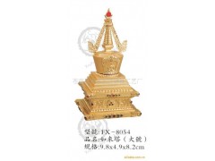如来塔高9.8厘米,宽4.9厘米,长8.2厘米,塔神表面镀金,有镶钻。此产品整体线条清晰,为纯铜所造。工艺上以手工与机械结合,是微型的佛教工艺品。