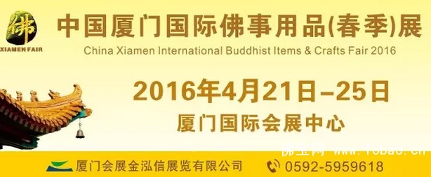 2016中国厦门国际佛事用品(春季)展览会将于2016年4月21日-25日在厦门国际会展中心隆重举行。展会规模进一步扩大,展览面积将达12万平方米,设置国际标准展位6500个,展期也应需求延长成为五天,至此,春秋两季厦门佛事用品展的展期皆为五天。届时,预计将吸引海内外参观观众超过20万人次。