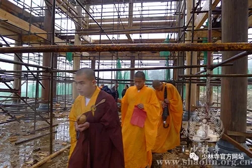 据延沛法师介绍,天津盘山北少林寺观音殿占地290平米,大殿高14.8米,为传统砖木隼牟结构,重檐歇山式,殿内梁柱以红松为主要木材。该殿位于寺院中轴线,将供奉观音菩萨圣像。(文:邹相 图:延万法师)