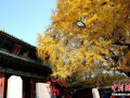 佛宝网河南讯2017年11月7日,河南登封嵩山少林寺内,千年古银杏树一片金黄,吸引民众流连忘返。其中天王殿前最大的一棵古银杏...