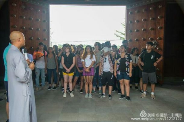 佛宝网廊坊讯 7月30日,中外学生文化交流代表团到隆福寺参访学习,慧广法师用通俗的语言对佛教的内涵进行了智慧的阐述,并根据隆福寺的实际情况与学生们经行了分享。巡礼结束后,同学们在五观堂随法师们过堂用斋,最后在大雄宝殿前合影留念。