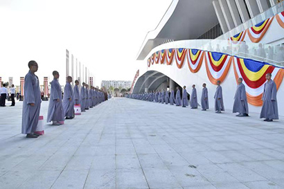 论坛迎接仪式、祈福仪式演练在莆田市会展中心进行(图片来源:福建省佛教协会)