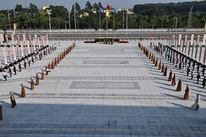 迎接仪式上,由僧众、尼众、男居士和女居士组成的千余名四众,仪态庄严、精神抖擞,整齐列队于论坛嘉宾参会行走道路的两旁。本次演练,福建省佛教界共有600多位僧尼参加,主要由闽南佛学院、福建佛学院、泉州佛学苑等院校的学生、泉州市佛教协会、厦门南普陀寺僧众、仙游龙华寺的尼众等群体组成。在则悟法师的带领下,福建省佛教协会副会长、闽南佛学院常务副院长界象法师,福建省佛教协会副会长空性法师,副秘书长理山法师、宏玉法师及相关工作组人员,对队列的行距、人员位置安排、威仪形态等进行现场调整和指导。