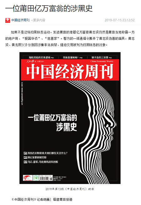 中国经济周刊报道《一位莆田亿万富翁的涉黑史》截图