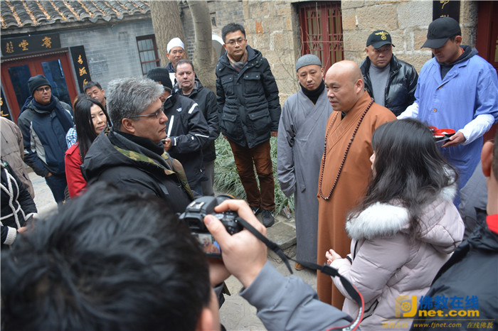 外国友人对中国佛教十分感兴趣,特别提出要来兴化禅寺,参拜北魏大佛,兴化禅寺方丈果光法师在明清小院欢迎远道而来的客人。