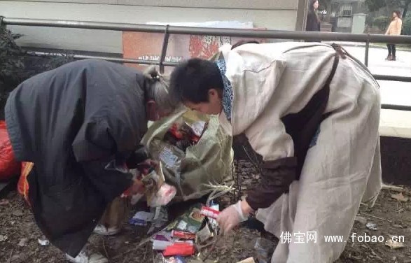 慈恩小组义工身体力行,在垃圾桶里淘宝的行为,感动了现场的保洁员,他们在清理垃圾时,会主动将带有三宝字纸的宣传单放在一边,让义工意外之余更感动、欢喜。小组的宗萍师兄,在广场上的垃圾桶捡拾三宝字纸时,遇到一位拾荒老婆婆在垃圾桶捡纸,便告诉老婆婆如果有类似的三宝字纸宣传单,最好分开留着,不要等同垃圾。次日宗萍师兄和宗梅师兄在广场垃圾桶捡拾三宝字纸时,又碰到这位拾荒的老婆婆,老婆婆不仅让她们将自己塑料袋中的三宝字纸拿走,还主动带她们到一处僻静的地方,拿出自己拾荒捡来的好几袋废纸,让宗萍师兄翻捡其中的三宝字纸,并给了宗梅师兄一个袋子,里面全部是三宝门票和宣传单,原来这是老婆婆专门收好,等我们来拿的。拾荒老婆婆如此举动,令宗萍、宗梅意外的同时,非常感动。宗萍师兄马上表示,会给老婆婆捡一些别人扔下的废纸,以此感谢老婆婆帮助收集三宝字纸。