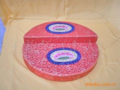 1.规格: 圆形60X60X6CM 下垫尺寸:60×25×6厘米(上垫) 2.特点:我们这种椰丝垫:中间是实心的椰丝垫芯,外面套一层棉,再外面是精绣莲花、八卦缎布布套,布套有拉链,方便折洗,大小垫都是!!! 100%纯天然椰丝、不含杂质、透气干爽、经久耐用、高温除菌防腐、不含任何对人体有害的物质。弹性好、皮肤接触柔和舒适,软硬兼有,全棉金丝缎布坐垫套,坐上去感觉更舒适。 透气不聚集汗气、水分。 3.我门工厂独有的设计每一件产品底部都带有防水、防潮、防尘垫。(因为拜垫使用都是直接放在地板上,很容易受潮、和弄脏,我厂根据长期使用的高僧大德们的试用和指点,开发出更加人性化的、每件产品底部都加有防水、防潮、防尘垫,使长期使用都可保证干燥不发霉,方便每个人使用。也方便拆洗) 5.顶级椰丝坐垫:该产品所采用的是自欧洲进口的天然、健康、透气舒适的长纤维椰丝配合天然乳胶运用精密科技高温杀菌、加压一体成型,是制作禅垫的上乘质料,拥有不易变型、弹性度佳的特点。此外,该坐垫品质优良正宗、极贴合人体力学原理,因此能全面舒适地承托人体,进而提升打坐质量,尤适宜长时间打坐,所以目前在台湾乃至国外都广被采用。 6.性价比最高,该材质所制作的坐垫其耐用性是所有材质中最为持久的,长远来看可杜绝浪费,故性价比最高。 【产品比较】 我厂的产品均出口台湾,在全台湾有直接的销售门店,受到广大修禅爱好者的好评。 【经营宗旨】研发生产最适合的宗教用品,为学佛人提供助益! 现诚招各地代理,批发商 电话:13306033700 QQ :624079324 联系人:王益冬